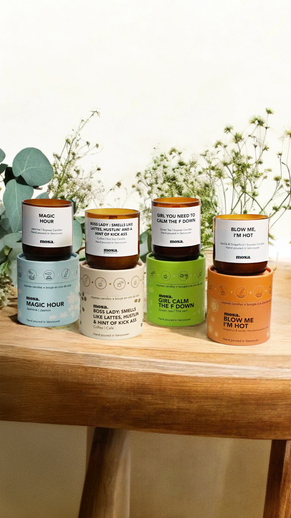 BIPOC-Owned Immigrant-Owned Minority-Owned Small Business Sustainable/green Women-Owned Youth-OwnedMosa is a Vancouver-based award winning brand that offers upcycled home décor products. Each of its products provide people with a simple way to take a sustainable step and make an environmental impact. We collect used glass bottles and upcycle them into timeless products such as candles, platters and glasses. The CEO has been awarded BC Business Women of the year and 30 Under 30 awards.